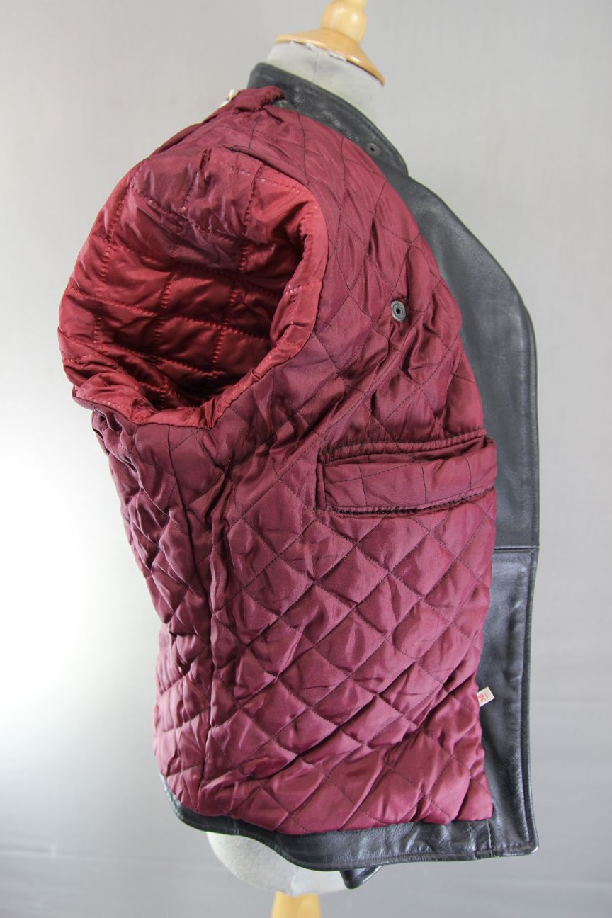 Quilted burgundy coloured lining.