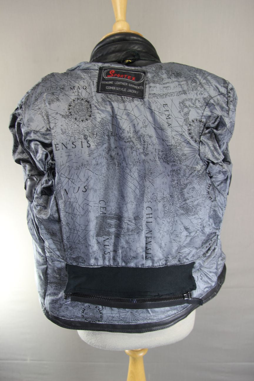 VINTAGE 1980's SPORTEX BLACK, RED AND WHITE COMBI LEATHER BIKER JACKET 34 INCH