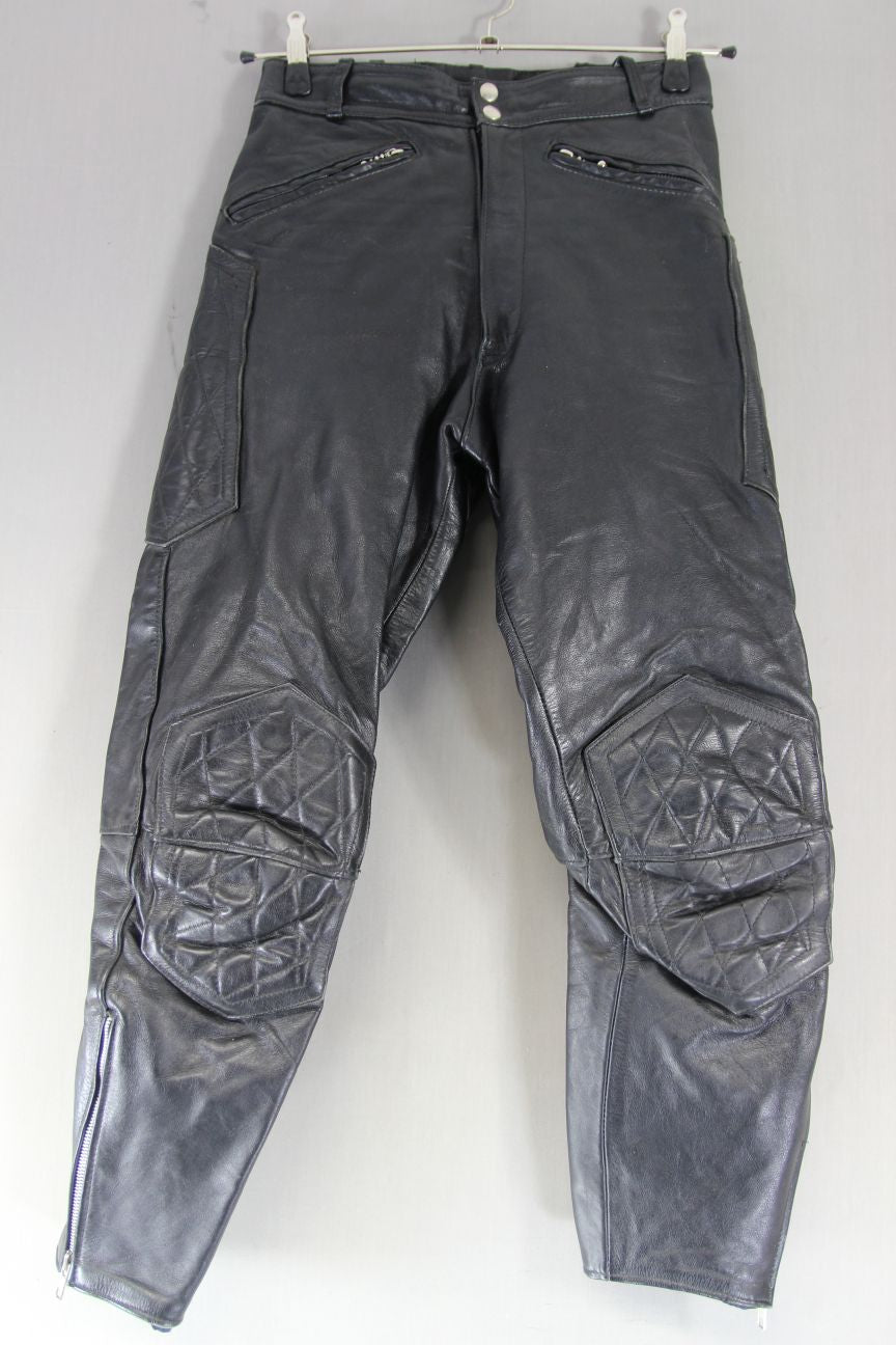 VINTAGE BRITISH MADE RIVETTS OF LONDON LEATHER BIKER TROUSERS: WAIST 28"/LEG 27"