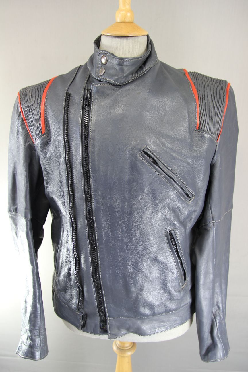 VINTAGE KETT GREY & RED COWHIDE LEATHER BIKER JACKET 42-44 INCH