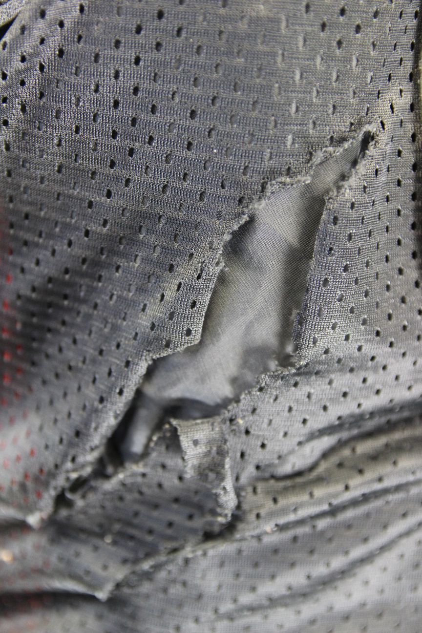 The jacket has a breathable black lining. There is a tear to the lining near the hem on one side, as pictured.