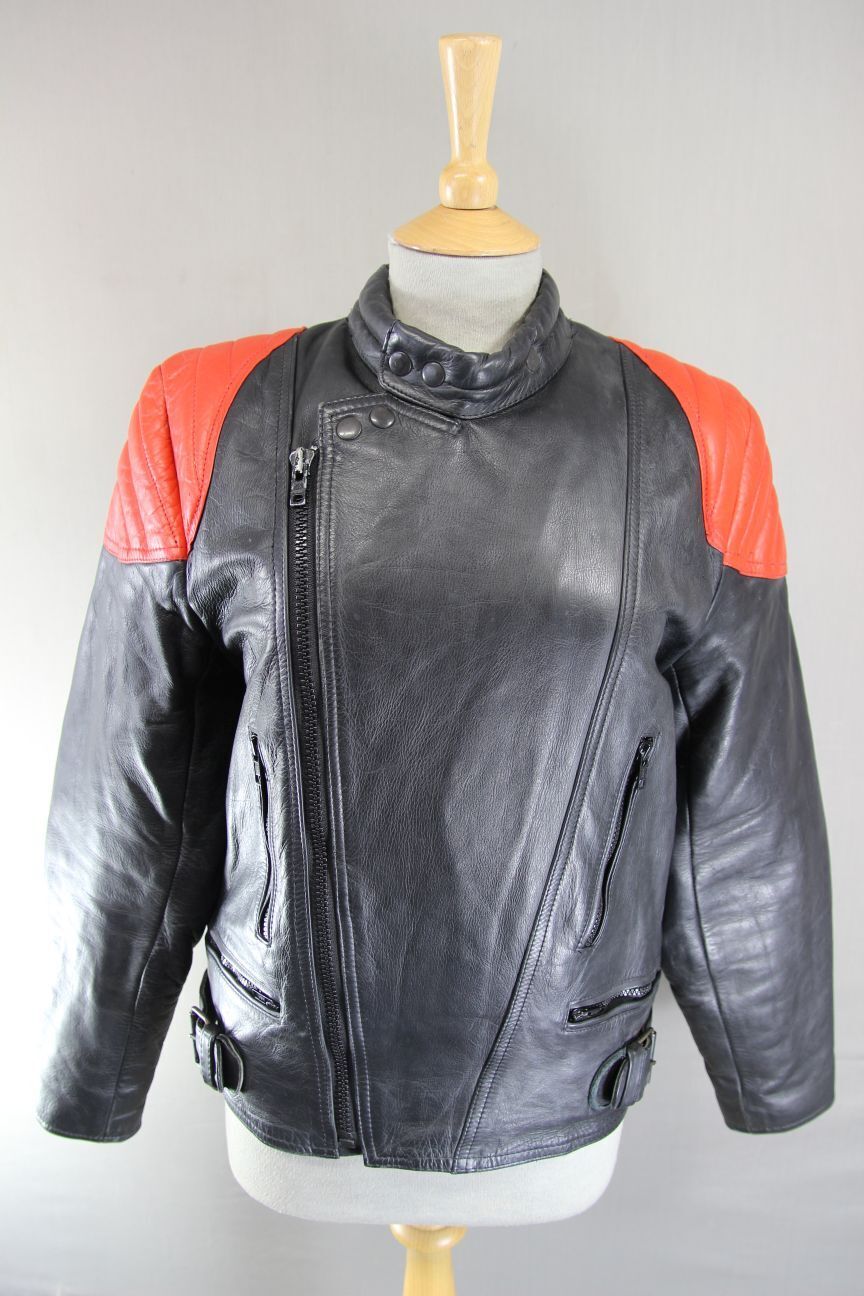 VINTAGE WADDINGTON CLASSIC BLACK & RED LEATHER BIKER JACKET