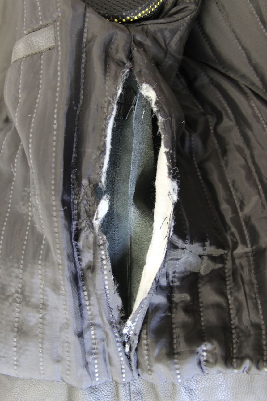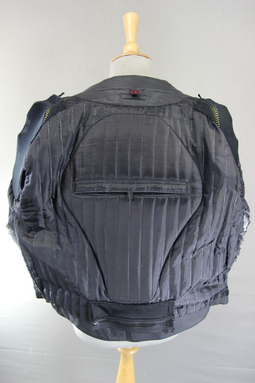 Fitted with removable CE armour at the shoulders and elbows/forearms, held in velcro fastened 'pockets' on the lining. There is a similar pocket with a back protector (this the foam type and is not CE marked). There is also built in light padding at the elbows/forearms.