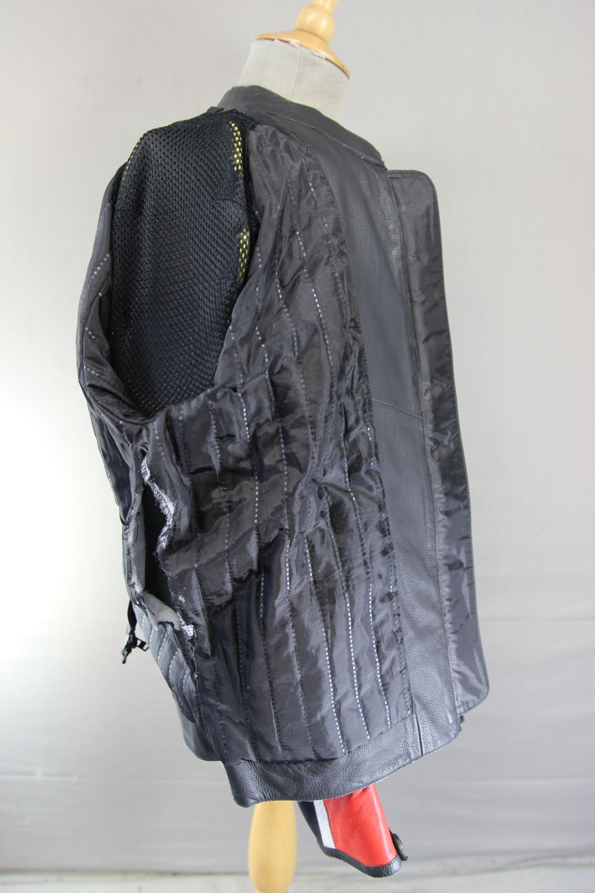 A SUPERB QUALITY LEATHER BIKER JACKET WITH FULL SET OF PROTECTORS.